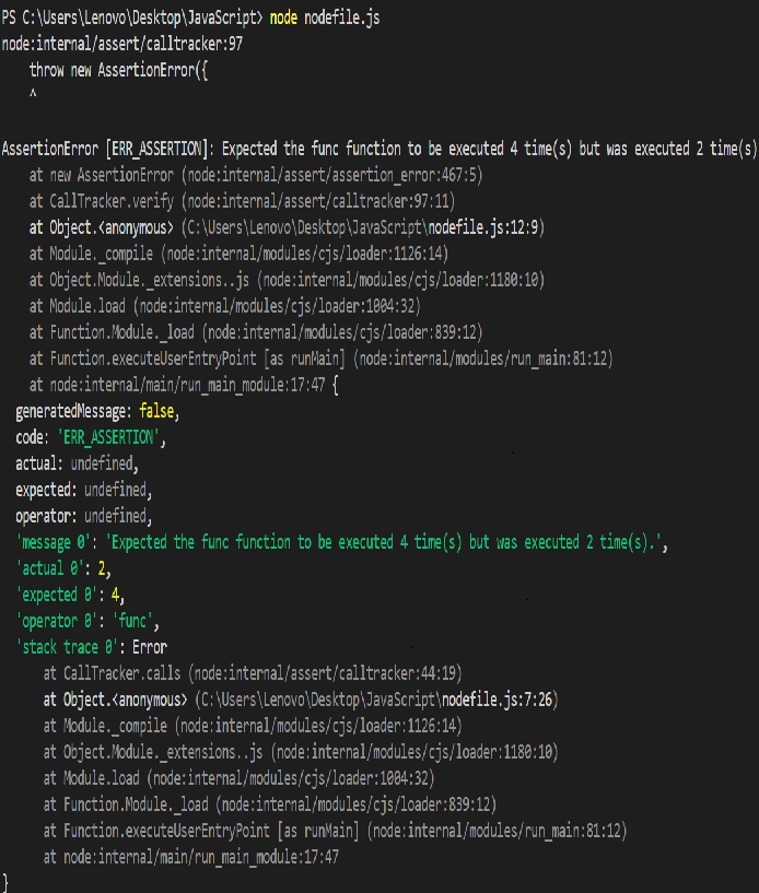 - 我们没有将任何值传递给 Node.js tracker.calls() 函数的确切参数,它采用 1 作为默认值。因此,预计函数 func 至少应调用一次。