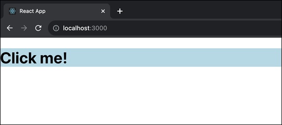 运行应用程序后,它使我们能够快速与网页元素进行交互。当我们单击按钮时,框的颜色会变为浅蓝色。这个例子展示了 React 如何让我们轻松地调整和控制网页上项目的外观。