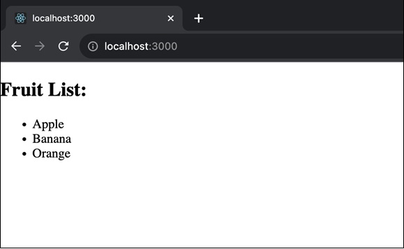 让我们使用 PureComponent 创建另一个 React 应用程序。在此示例中,我们将有一个 ListComponent,它使用 PureComponent 呈现项目列表。我们有一个 ListComponent,它在其状态下维护一个水果列表。该组件呈现 ListItem 组件的列表,每个组件都显示一个水果。我们已将 PureComponent 用于 ListItem 组件,以利用其自动检查属性更改的功能。